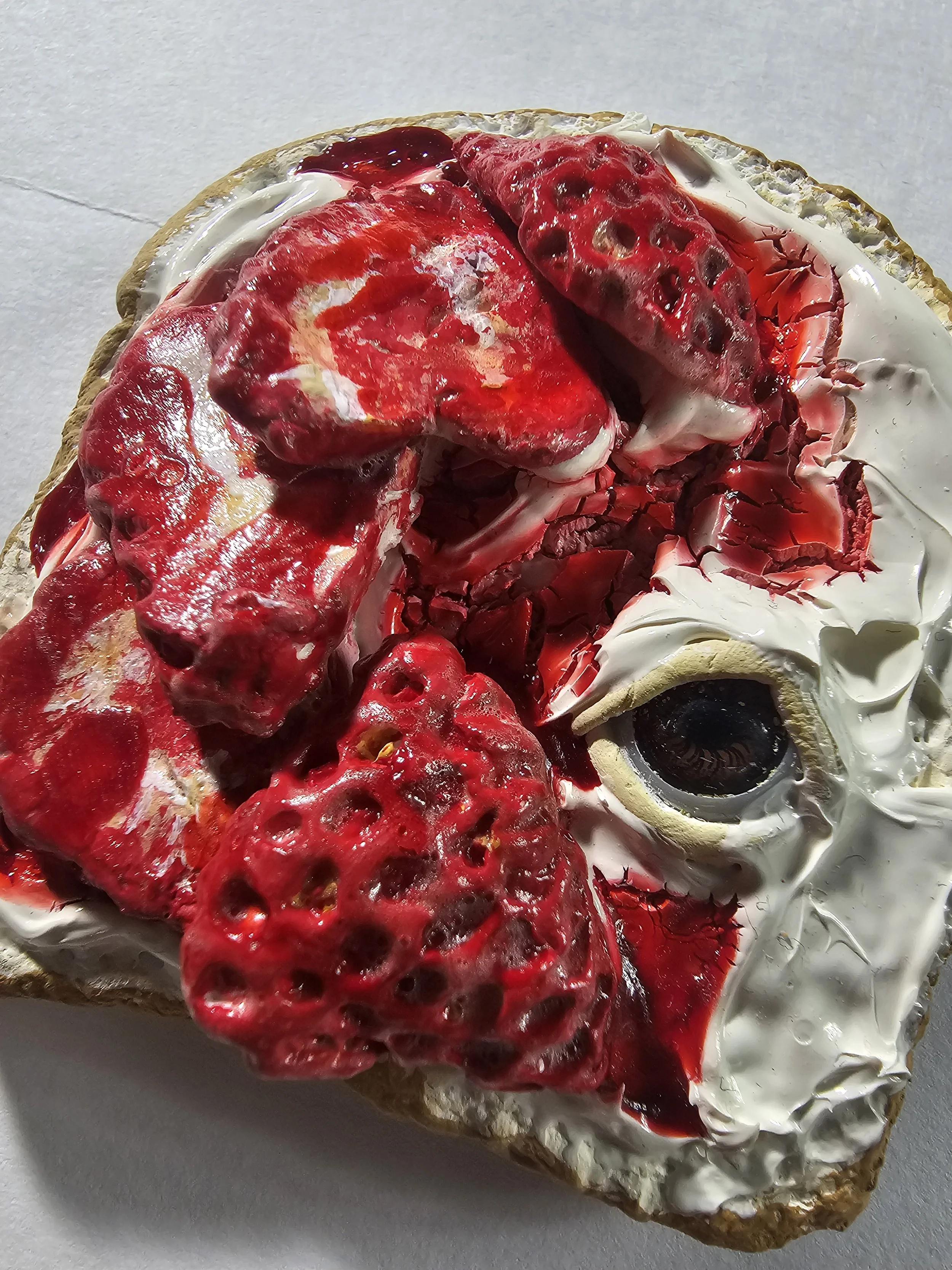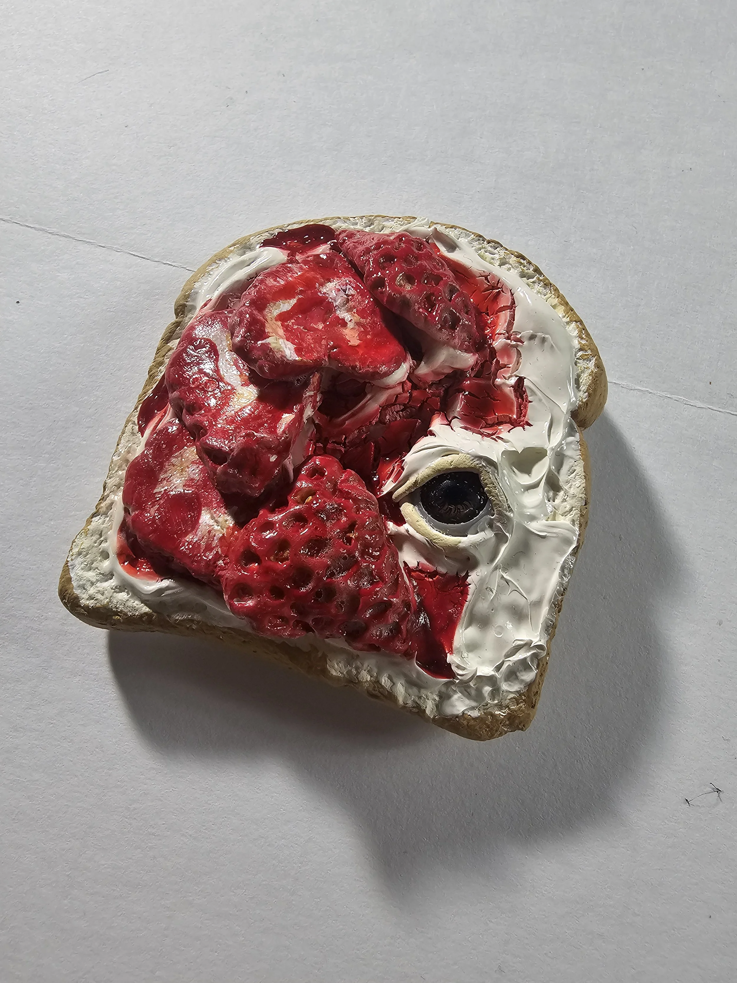 This adorable magnet is sure to bring some bakery charm. Modeled after whipped cream and strawberry compote ontop of fresh strawberry slices.