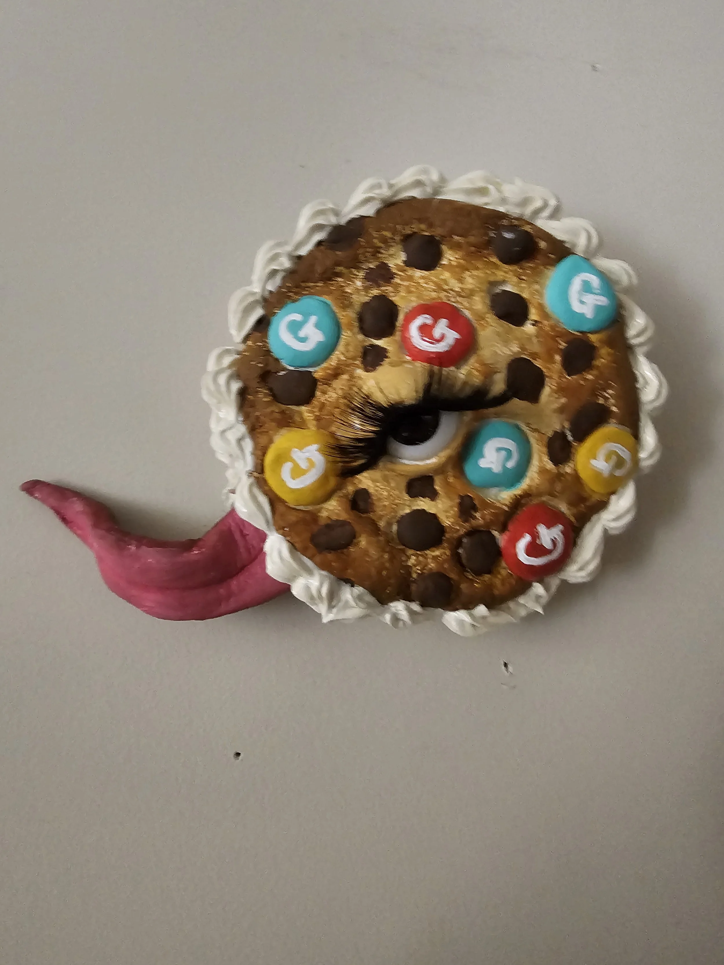 Tongues are so cool arent they? Whats even cooler, is this Cookie with a tonguge! Perfect piece to hang on your walls. Bring personality to your life!